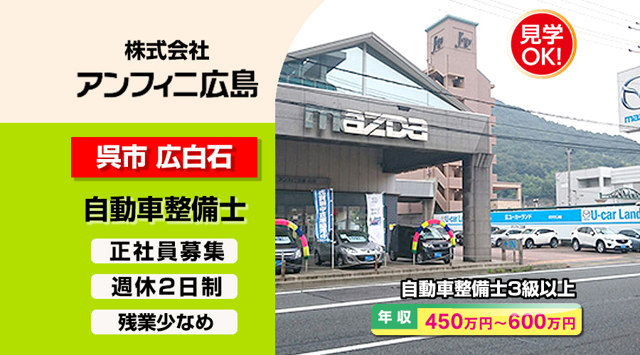 株式会社アンフィニ広島 (広店)【アンフィニ広島】 自動車整備士・メカニック(呉市広白石)