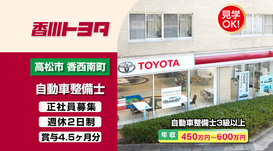 香川トヨタ自動車株式会社 (香西店)【香川トヨタ】 自動車整備士・メカニック(高松市香西南町)