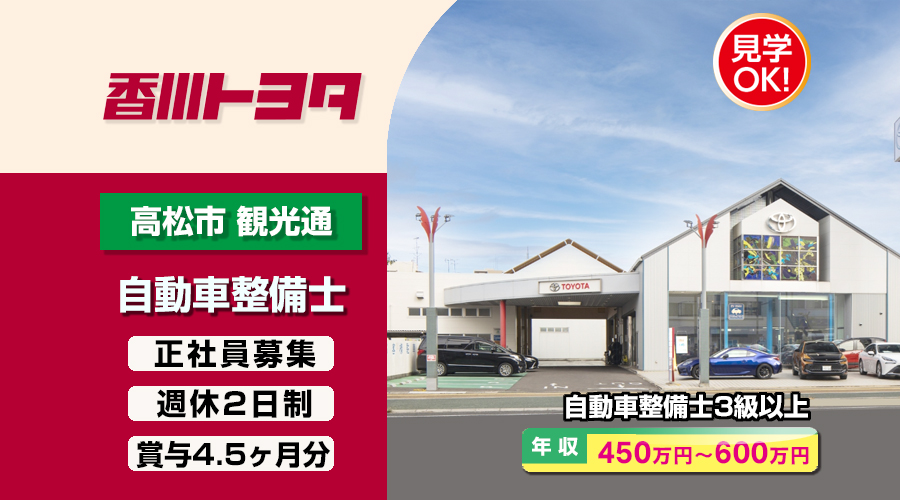 香川トヨタ自動車株式会社 (高松花園店)【香川トヨタ】 自動車整備士・メカニック(高松市観光通)