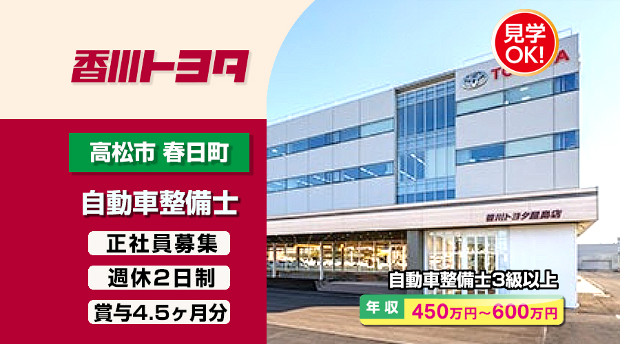 香川トヨタ自動車株式会社 (屋島店)【香川トヨタ】 自動車整備士・メカニック(高松市春日町)