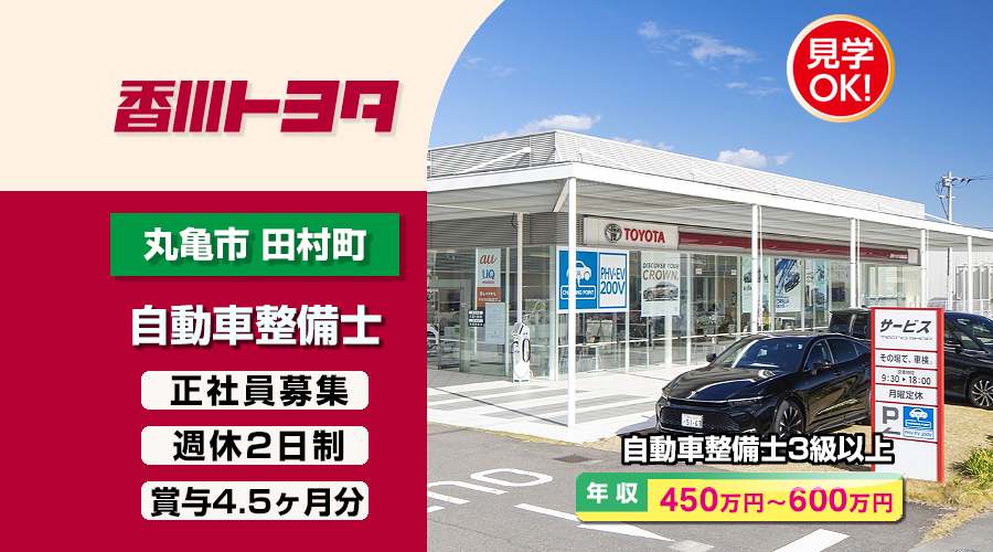 香川トヨタ自動車株式会社 (丸亀田村店)【香川トヨタ】 自動車整備士・メカニック(丸亀市田村町)