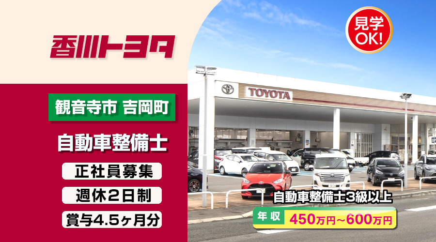 香川トヨタ自動車株式会社 (観音寺店)【香川トヨタ】 自動車整備士・メカニック(観音寺市吉岡町)