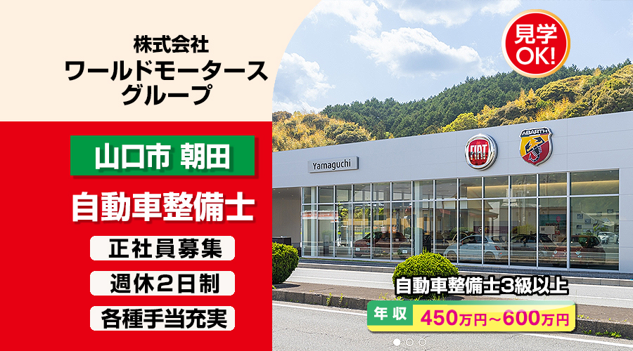 株式会社ワールドモータースグループ (FIAT/ABARTH 山口)【ワールドモータースグループ】 自動車整備士・メカニック(山口市朝田)