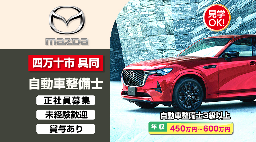 株式会社 西四国マツダ (中村店)【西四国マツダ】 自動車整備士・メカニック(四万十市具同)