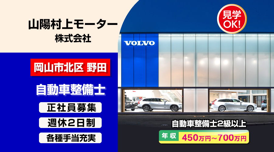 山陽村上モーター株式会社 (ボルボ・カー岡山)【山陽村上モーター】 自動車整備士・メカニック(岡山市北区野田)