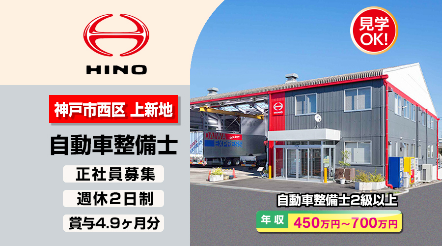 神戸日野自動車株式会社 (明石支店)【神戸日野自動車】 自動車整備士・メカニック(神戸市西区上新地)