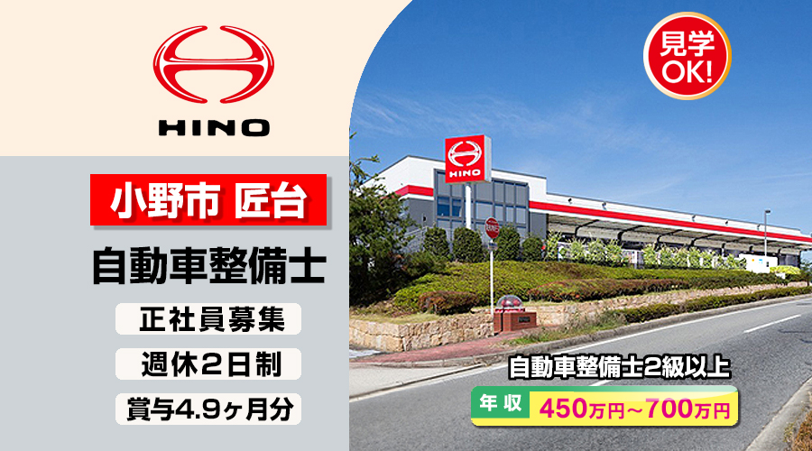 神戸日野自動車株式会社 (小野支店)【神戸日野自動車】 自動車整備士・メカニック(小野市匠台)