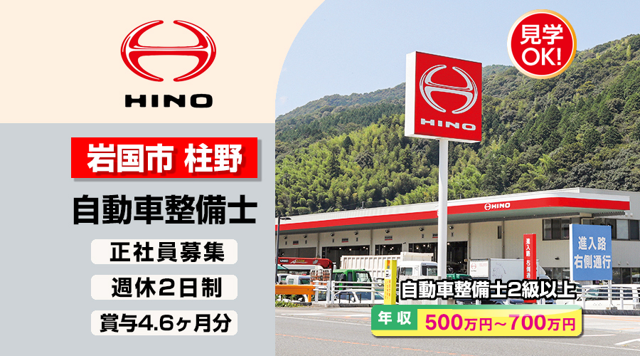 山口日野自動車株式会社 (岩国支店)【山口日野自動車】 自動車整備士・メカニック(岩国市柱野)