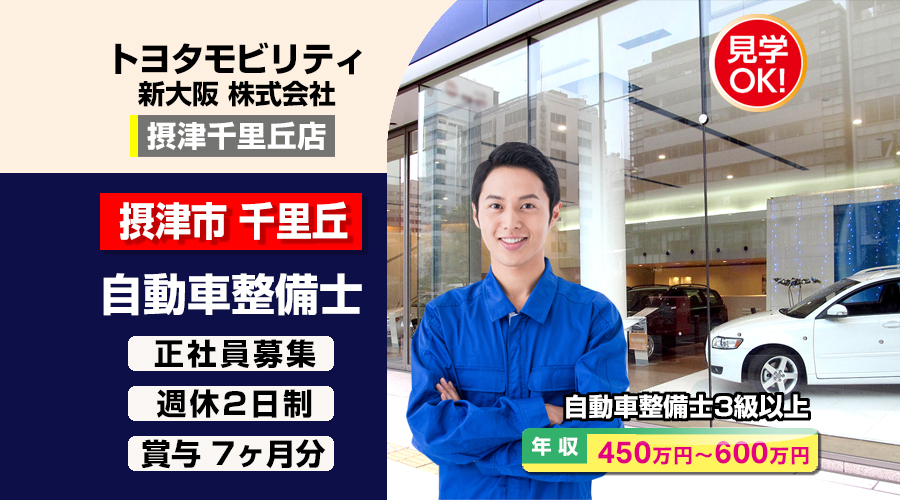 トヨタモビリティ新大阪株式会社 (摂津千里丘店)【トヨタモビリティ新大阪】 自動車整備士・メカニック(摂津市千里丘)