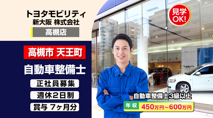 トヨタモビリティ新大阪株式会社 (高槻店)【トヨタモビリティ新大阪】 自動車整備士・メカニック(高槻市天王町)