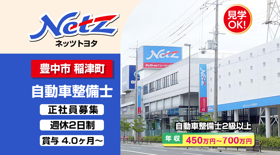 ネッツトヨタニューリー北大阪株式会社 (豊中店)【ネッツトヨタニューリー北大阪】 自動車整備士・メカニック(豊中市稲津町)