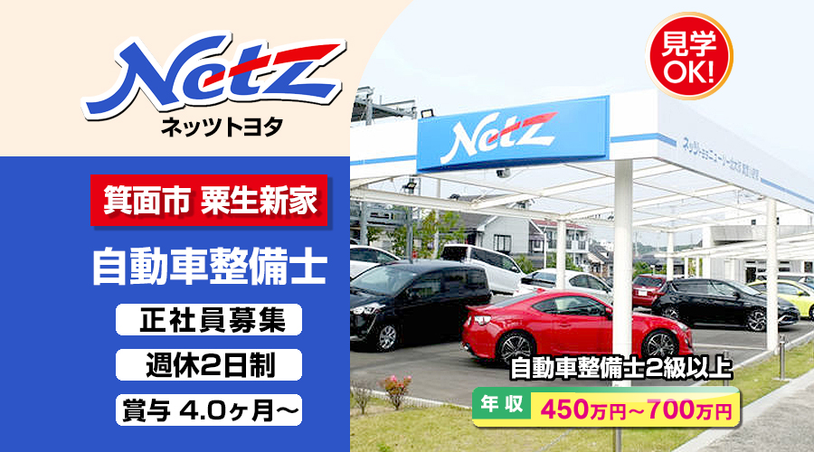 ネッツトヨタニューリー北大阪株式会社 (箕面小野原店)【ネッツトヨタニューリー北大阪】 自動車整備士・メカニック(箕面市粟生新家)