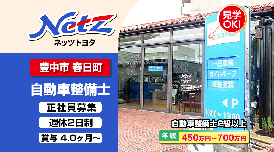 ネッツトヨタニューリー北大阪株式会社 (緑ヶ丘店)【ネッツトヨタニューリー北大阪】 自動車整備士・メカニック(豊中市春日町)