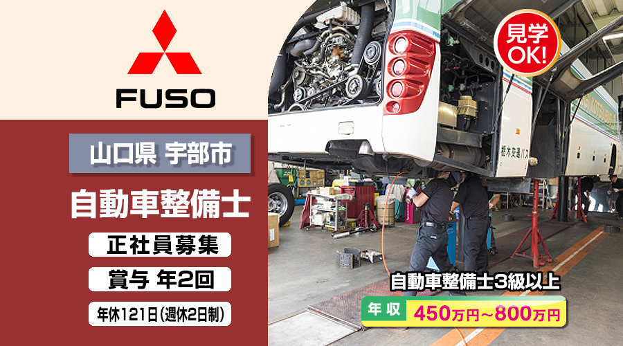 三菱ふそうトラック・バス株式会社【三菱ふそう】 自動車整備士・メカニック(山口県宇部市)
