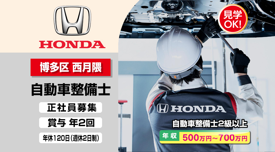 株式会社ホンダモビリティ九州【ホンダモビリティ九州】 自動車整備士・メカニック(福岡市博多区西月隈)