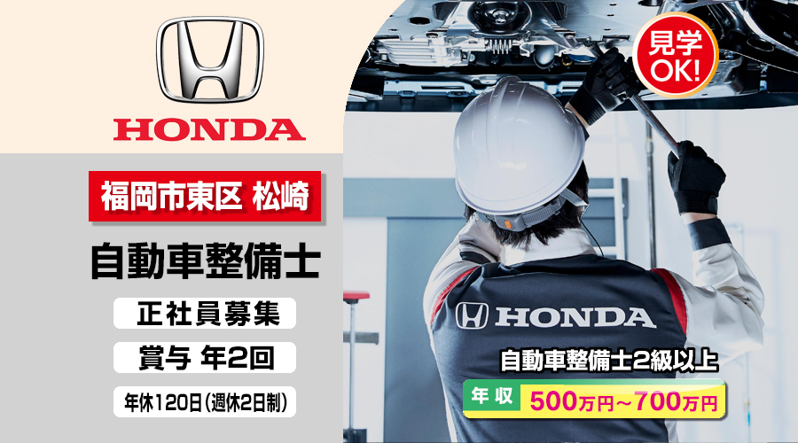 株式会社ホンダモビリティ九州【ホンダモビリティ九州】 自動車整備士・メカニック(福岡市東区松崎)