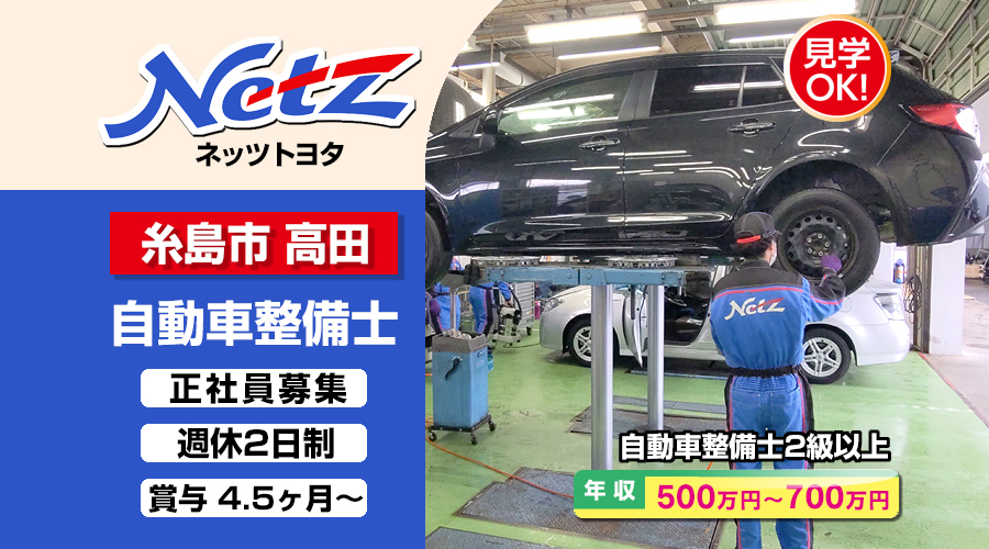 ネッツトヨタ福岡株式会社【ネッツトヨタ福岡】 自動車整備士・メカニック(福岡県糸島市高田)
