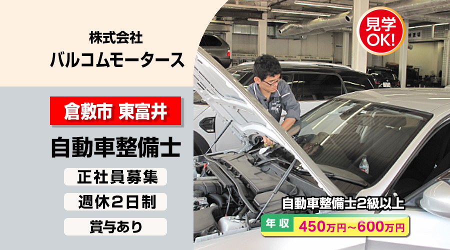 株式会社バルコムモータース【バルコムモータース】 自動車整備士・メカニック(倉敷市東富井)