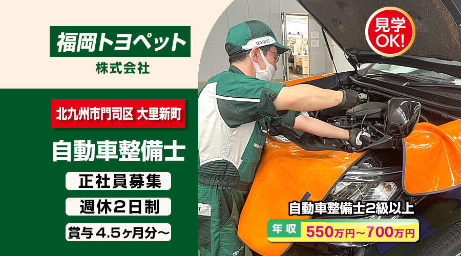 福岡トヨペット株式会社【福岡トヨペット】 自動車整備士・メカニック(北九州市門司区大里新町)