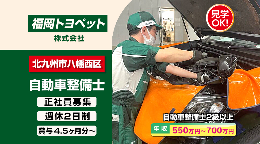福岡トヨペット株式会社【福岡トヨペット】 自動車整備士・メカニック(北九州市八幡西区竹末)