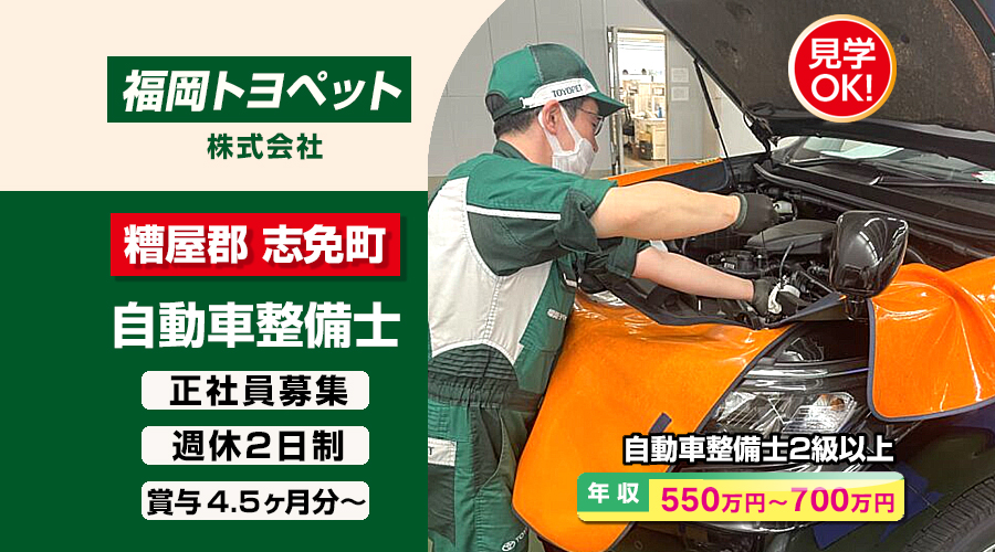 福岡トヨペット株式会社【福岡トヨペット】 自動車整備士・メカニック(福岡県糟屋郡志免町)