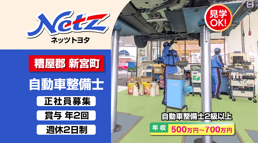 ネッツトヨタ西日本株式会社【ネッツトヨタ西日本】 自動車整備士・メカニック(福岡県糟屋郡新宮町)