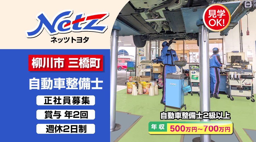 ネッツトヨタ西日本株式会社【ネッツトヨタ西日本】 自動車整備士・メカニック(福岡県柳川市三橋町)