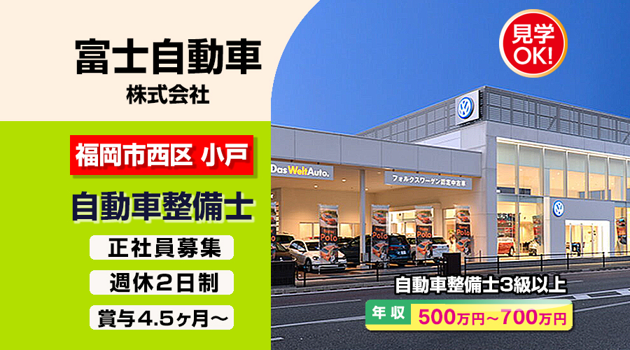 富士自動車株式会社【富士自動車】 自動車整備士・メカニック(福岡市西区小戸)