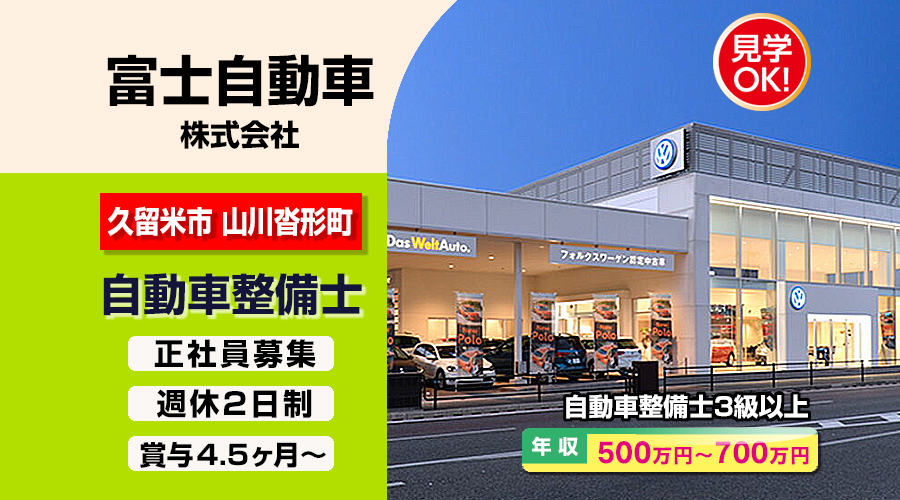 富士自動車株式会社【富士自動車】 自動車整備士・メカニック(久留米市山川沓形町)