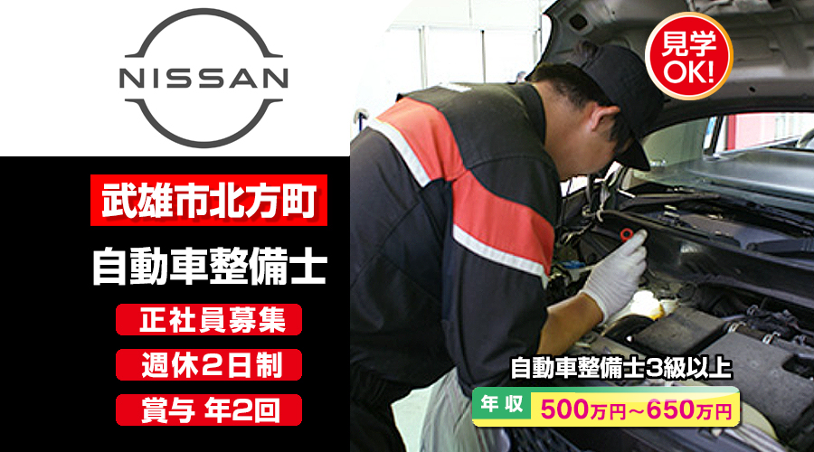 佐賀日産自動車株式会社【佐賀日産】 自動車整備士・メカニック(佐賀県武雄市北方町)