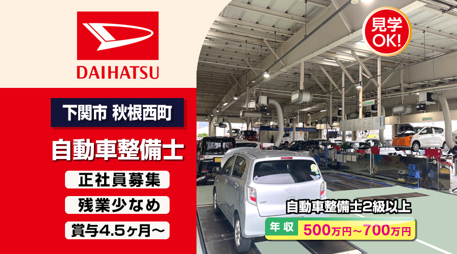 山口ダイハツ販売株式会社【山口ダイハツ販売】 自動車整備士・メカニック(山口県下関市秋根西町)
