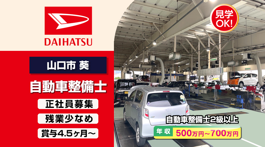 山口ダイハツ販売株式会社【山口ダイハツ販売】 自動車整備士・メカニック(山口市葵)