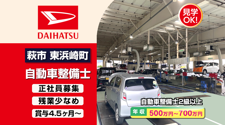 山口ダイハツ販売株式会社【山口ダイハツ販売】 自動車整備士・メカニック(山口県萩市東浜崎町)