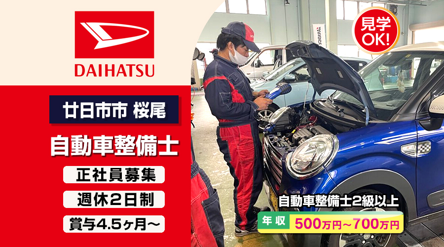 ダイハツ広島販売株式会社【ダイハツ広島販売】 自動車整備士・メカニック(広島県廿日市市桜尾)