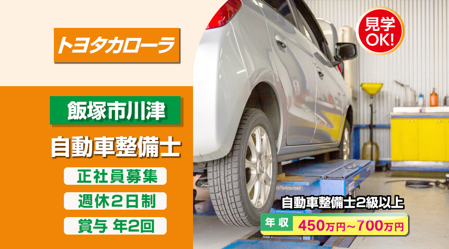 トヨタカローラ博多株式会社【トヨタカローラ博多】 自動車整備士・メカニック(福岡県飯塚市大字川津)