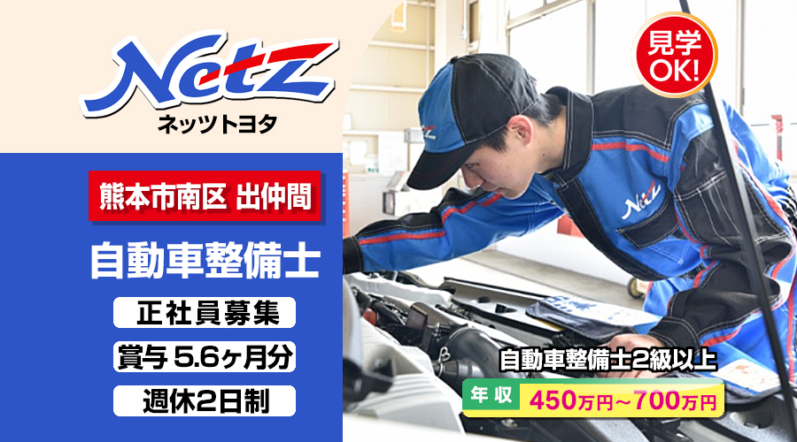 ネッツトヨタ熊本株式会社【ネッツトヨタ熊本】 自動車整備士・メカニック(熊本市南区出仲間)