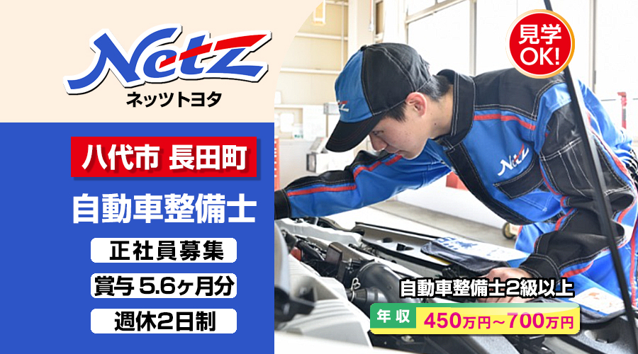 ネッツトヨタ熊本株式会社【ネッツトヨタ熊本】 自動車整備士・メカニック(熊本県八代市長田町)